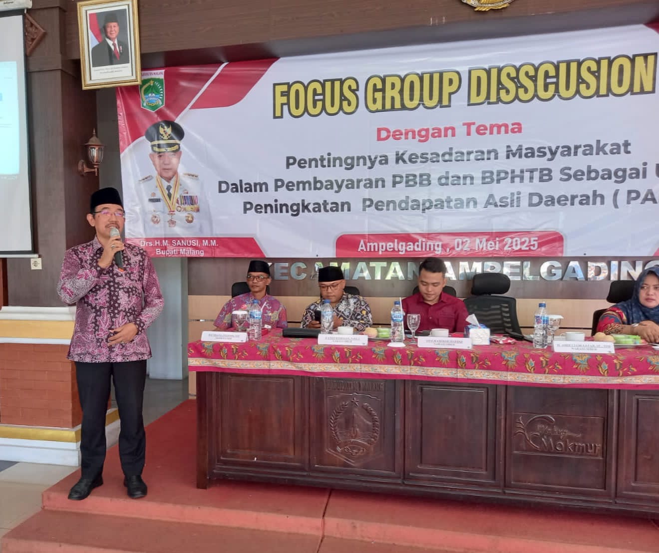 MALANG | KORANBANGSA.com – Kegiatan Forum Group Disscusion (FGD) dengan tema “Pentingnya Kesadaran Masyarakat dalam Pembayaran PBB dan BPHTB sebagai Upaya Peningkatan Pendapatan Asli Daerah (PAD)” dihadiri oleh H. Abdulloh Satar, M.M, Ketua Fraksi PKB yang juga Anggota Komisi lll DPRD Kabupaten Malang yang salah satu ruang lingkup pembahasannya adalah infrastruktur dan pembangunan. Kegiatan ini bertempat di Aula Kantor Kecamatan Ampelgading, Malang pada Jum’at siang, (02/05/2024).