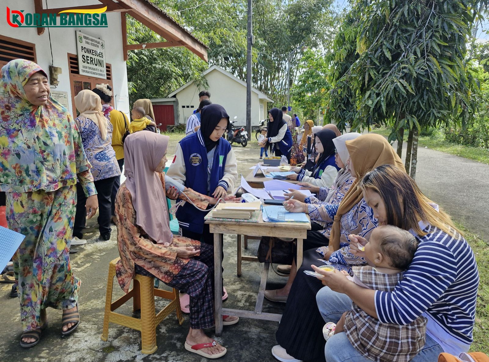 Pada siang hari, kegiatan dilanjutkan dengan pelayanan kesehatan untuk lansia. Sebanyak puluhan lansia datang untuk mendapatkan pemeriksaan rutin. Para kader dan tenaga kesehatan memeriksa tekanan darah, gula darah, dan berat badan para lansia.